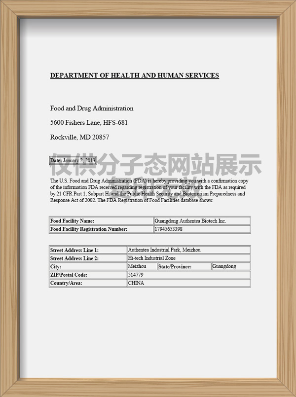 FDA(美國(guó)食品和藥物管理局)認(rèn)證