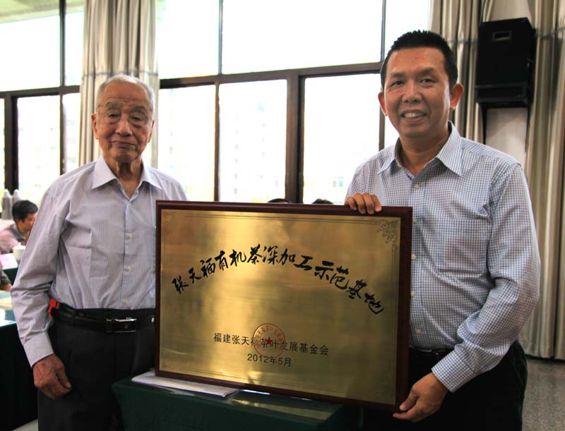 在剛剛舉行的張?zhí)旄2枞~發(fā)展基金會換屆大會上,104歲茶圣張?zhí)旄ⅰ皬執(zhí)旄S袡C茶深加工示范基地”授予正源華茶,這是張老在指導建設(shè)了五個有機茶種植示范基地之后,建設(shè)的唯一一個有機茶深加工示范基地,寄托了張老對有機茶深加工的殷切期望。